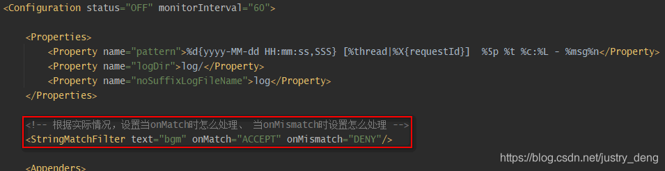 | StringMatchFilter | 如果格式化后(即:最终)的日志信息中包含${指定的字符串},则onMatch,否则onMismatch 即: msg.contains(this.text) ? onMatch : onMismatch; | 是 |