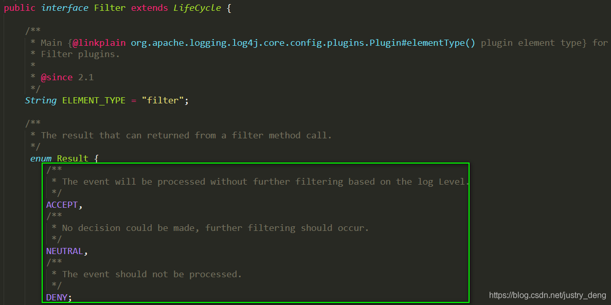 log4j2走过滤器的逻辑后,会返回对应的过滤Result结果,以控制是否记录日志、怎样记录日志。过滤器的结果有: