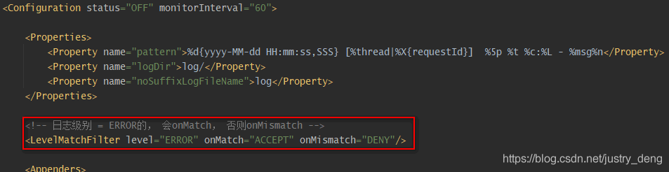 | LevelMatchFilter | 如果日志级别等于${指定的日志级别},则onMatch,否则onMismatch | 是 |