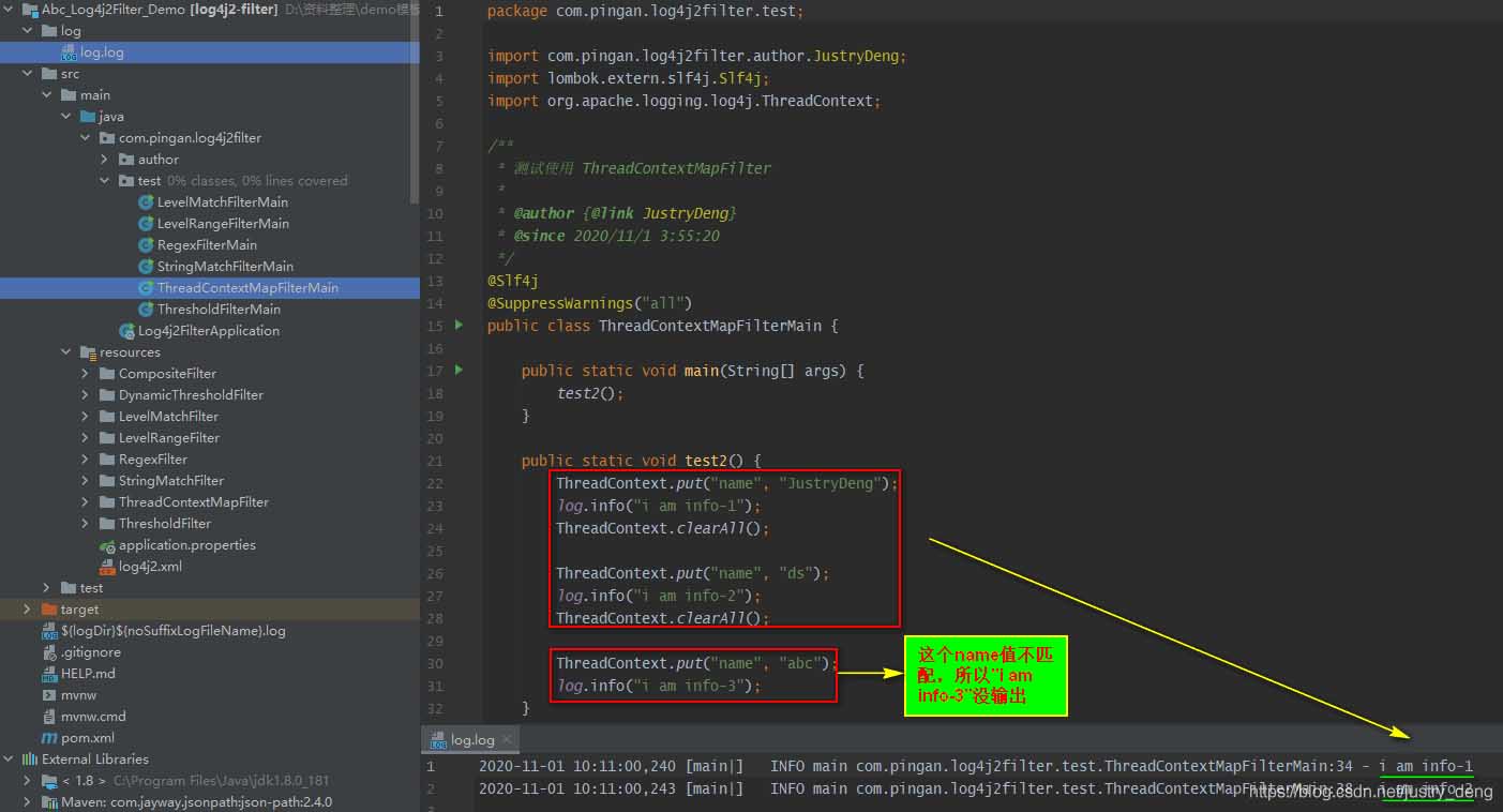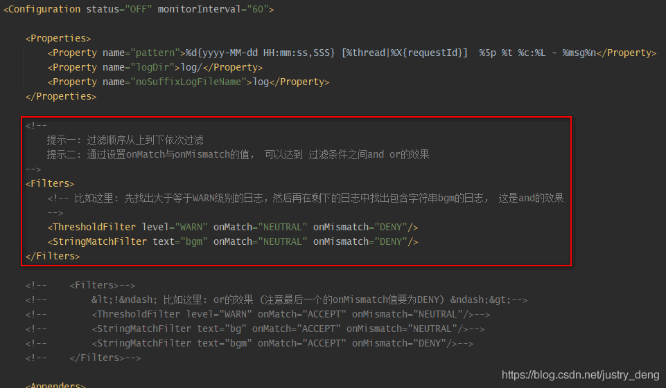 以上就是忧郁老鼠最近收集整理的关于log4j2使用filter过滤日志方式的全部内容,更多相关log4j2使用filter过滤日志方式内容请搜索靠谱客的其他文章。