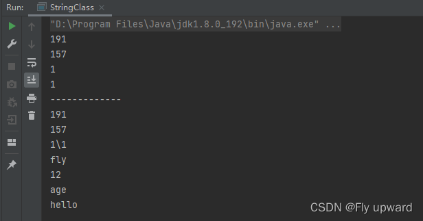 String ret = str.concat("fly");//字符串的拼接