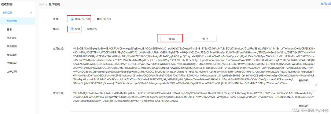 在线工具地址:https://miniu.alipay.com/keytool/create