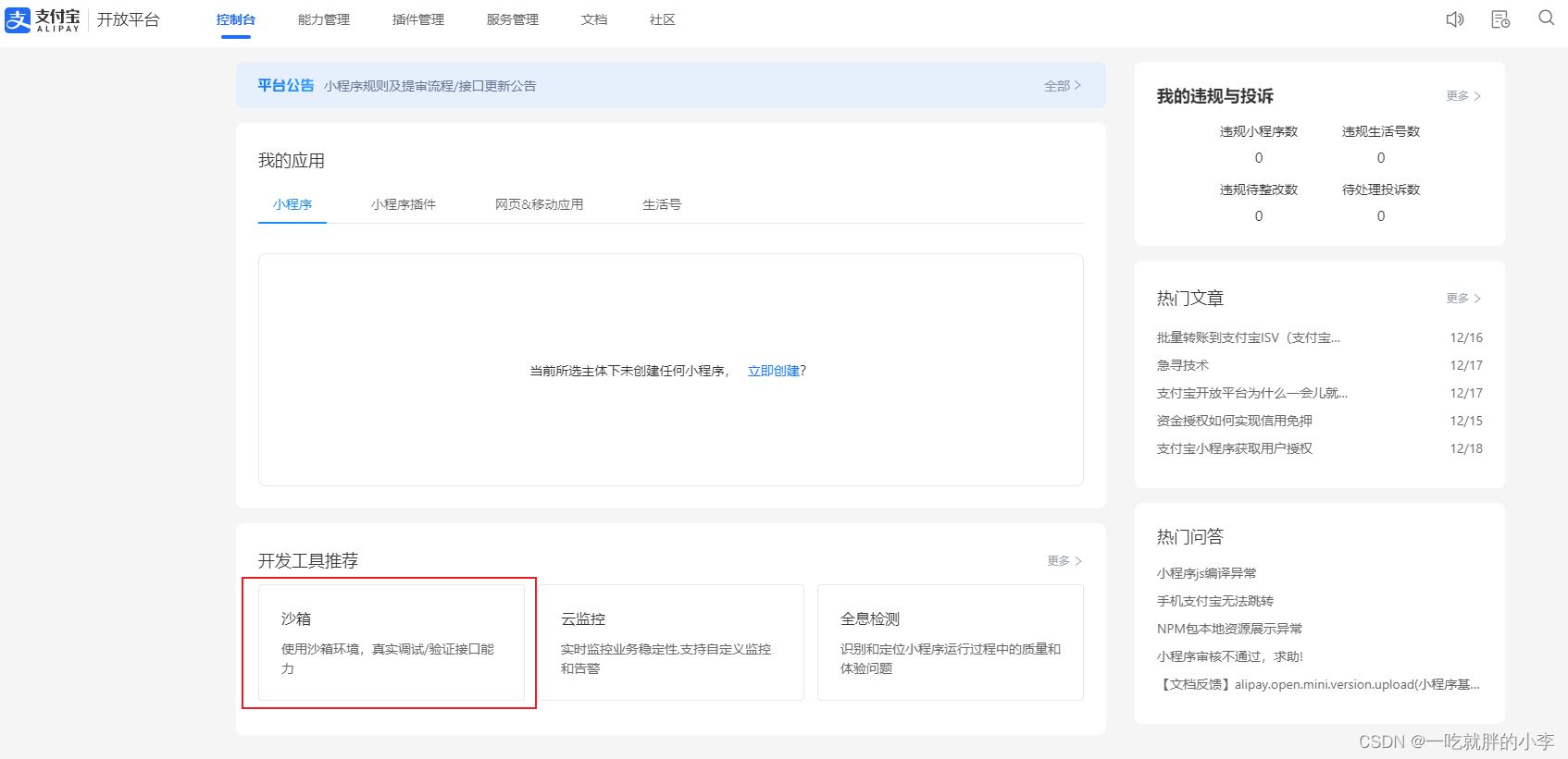 注册支付宝开发者账户,进入开发者控制台