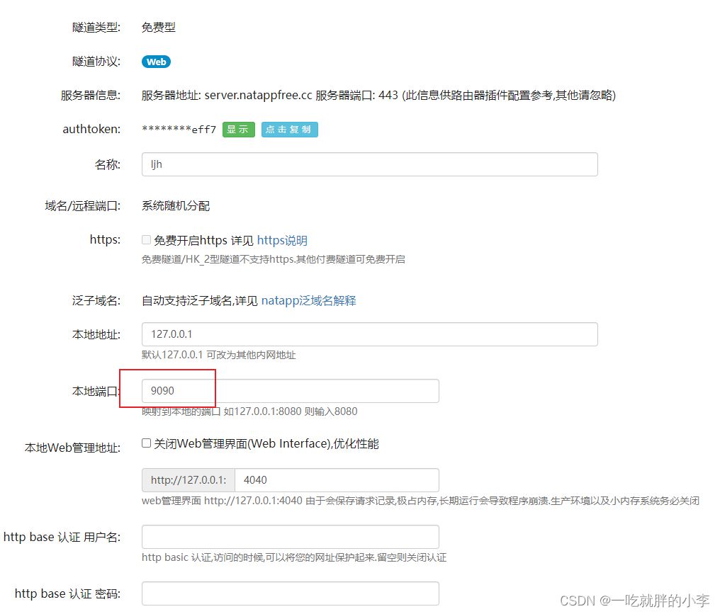 注意隧道的端口要配置成你的后台端口,例如9090