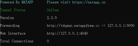 内网穿透就是把本机的 ip 和端口暴露到外网,通过指定的 url 可以访问你本地的服务,当然 ,这存在一定的安全风险,请谨慎使用!使用命令开启 natapp 后,会生成一个外网的地址指向你本地的服务地址,当你访问http://tdqxnr.natappfree.cc,跟你访问 127.0.0.1:9090 效果是一样的,只不过一个是对外的,一个是只能本地访问。