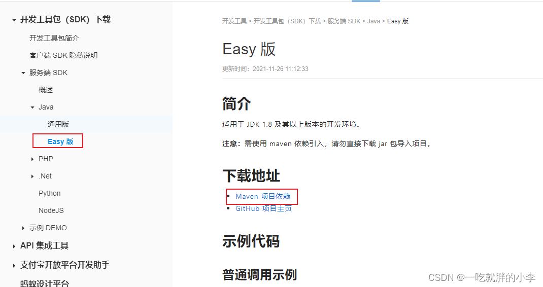 他提供了一个Easy版本的Java SDK集成方案,我们可以直接用这个。