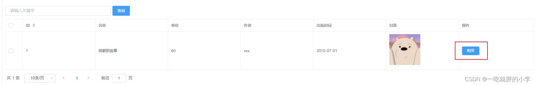 在书籍的表格里,我加了个 购买的按钮用来测试支付功能。