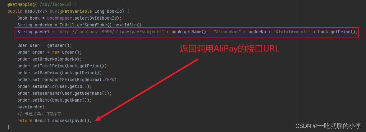 String payUrl = "http://localhost:9090/alipay/pay?subject=" + book.getName() + "&traceNo=" + orderNo + "&totalAmount=" + book.getPrice();