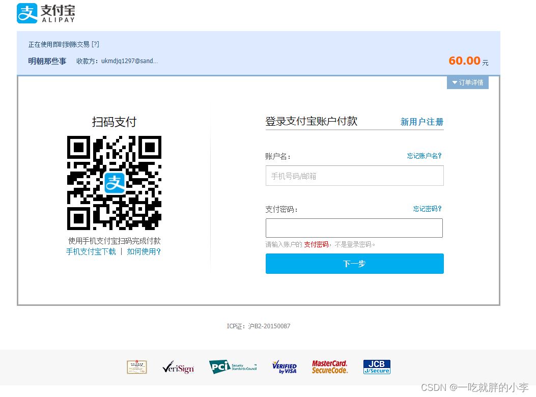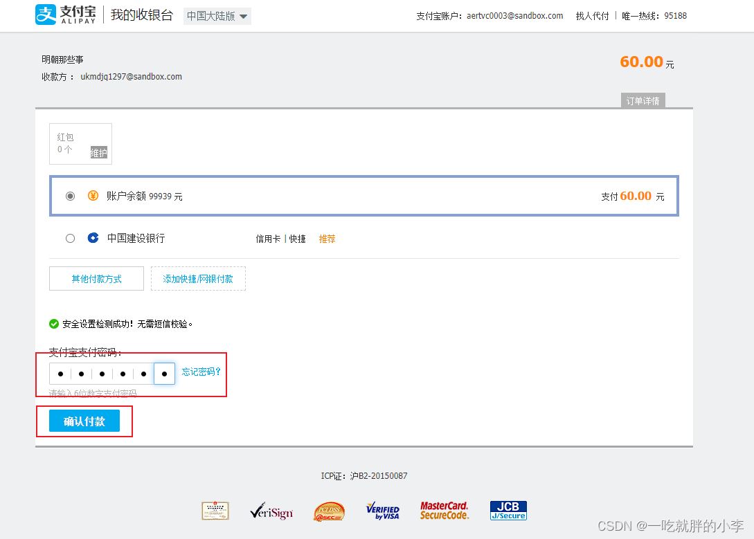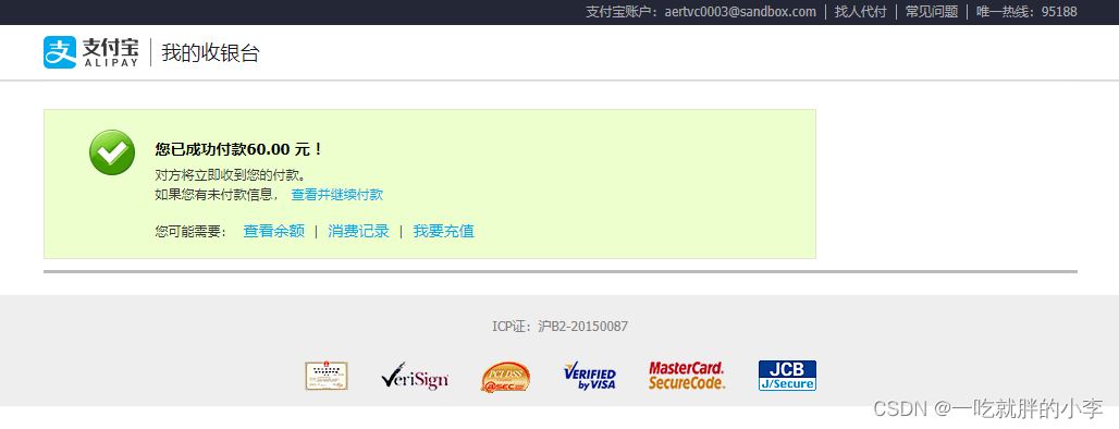 支付宝沙箱页面是这样的: