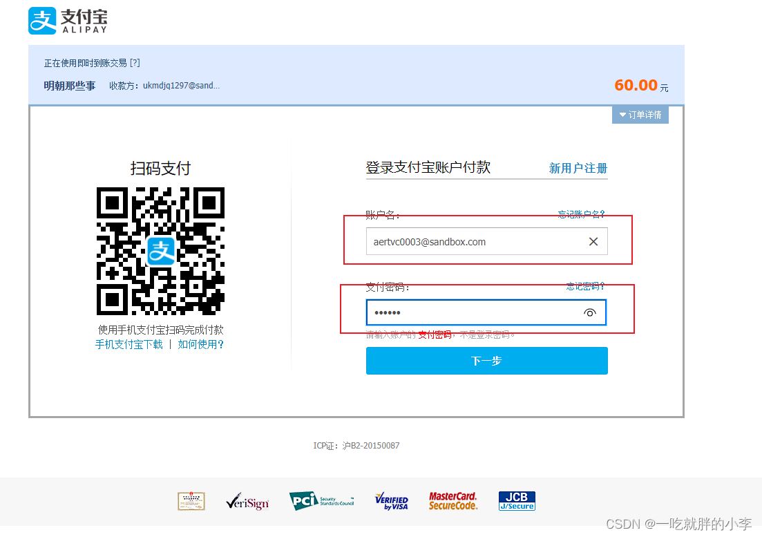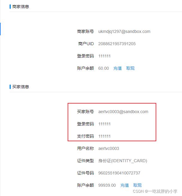 这里的账户和密码都是模拟的,可以在自己的沙箱账户里找到,地址: