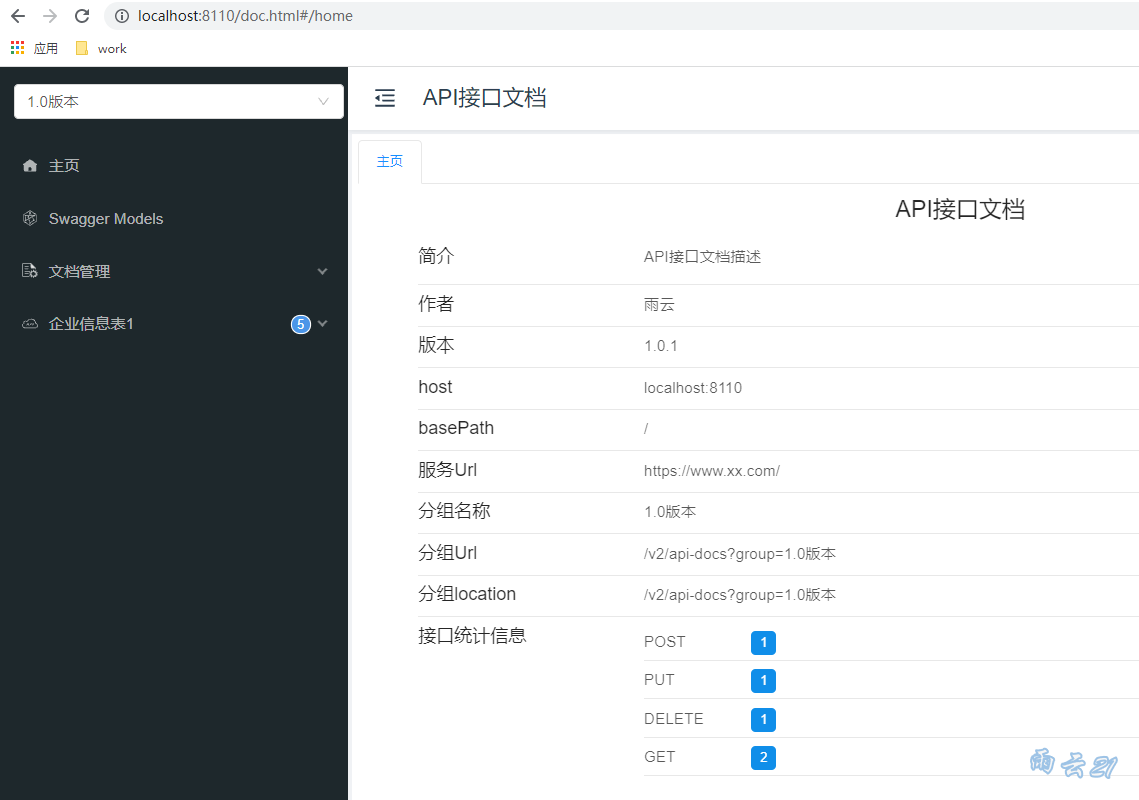 项目运行后,访问ip+端口号+/doc.html,比如http://localhost:8110/doc.html。效果如图