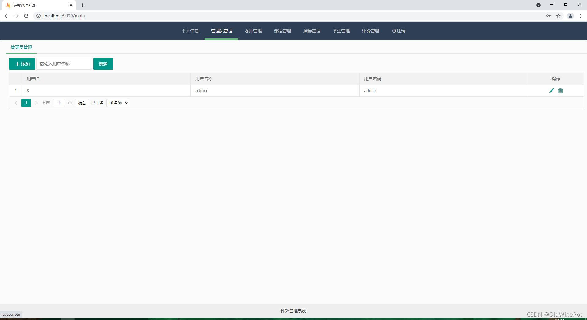 管理员功能有:学生管理、教师管理、评教管理、指标管理、课程管理等。