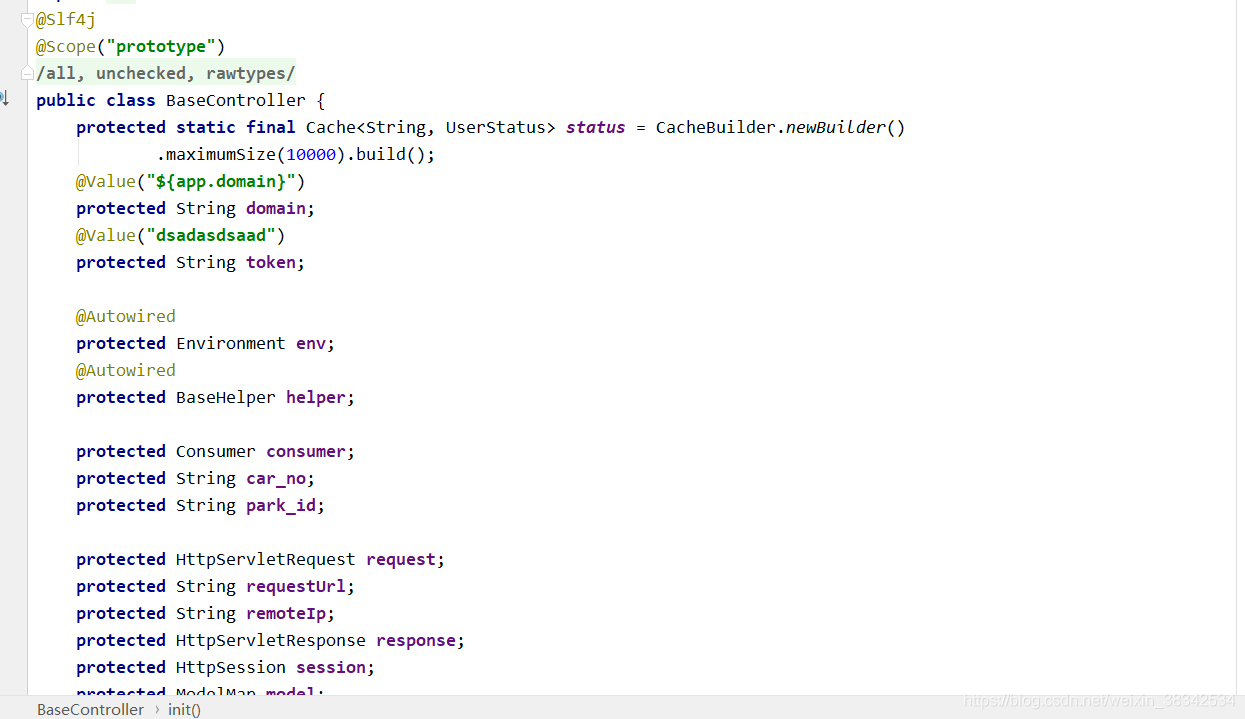 使用的是@ModelAttribute注解,这个注解的意思是,在该controller的所有方法前执行,意在初始化,我猜测之前的同事应该是为了获取相同的一些参数,抽调出来做一个父类,随着迭代,别的同事为了方便,拿来就用,导致很多controller继承了该类。
