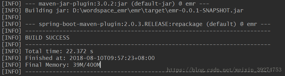 package会将Maven工程打包成一个可执行的jar文件存放在target目录下,在控制台中看到有如下输出则表示输出成功: