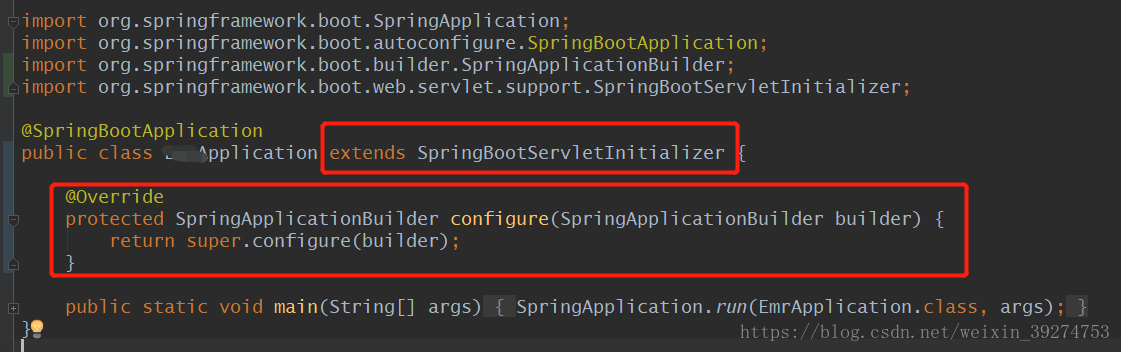 修改启动类,并重写初始化方法