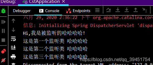 事件监听器可以消费这个事件,而事件源不用关注发布的事件有哪些监听器,