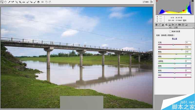 再到具体分析颜色方面,个人觉得河水太黄了不够好看,天空不够蓝,草地也不够绿,发现不足后再对相应颜色进行调节,参数如下,还是那句,不用去记参数~