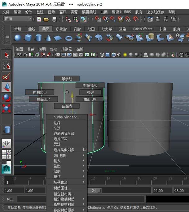 8、如果说我们建模时,将曲面模型转换为多边形模型后,并没有删除,做到最后分不清哪个是曲面模型哪个是多边形模型,我们可以点击其中一个鼠标右击拖拽。