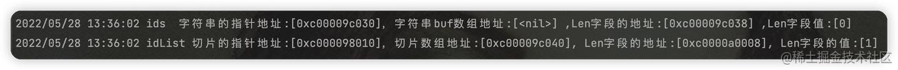 basePrintInfoV2 = "%s切片的指针地址:[%p],切片数组地址:[%p], Len字段的地址:[%p], Len字段的值:[%v]"