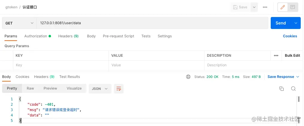 未登录时访问认证接口:返回错误