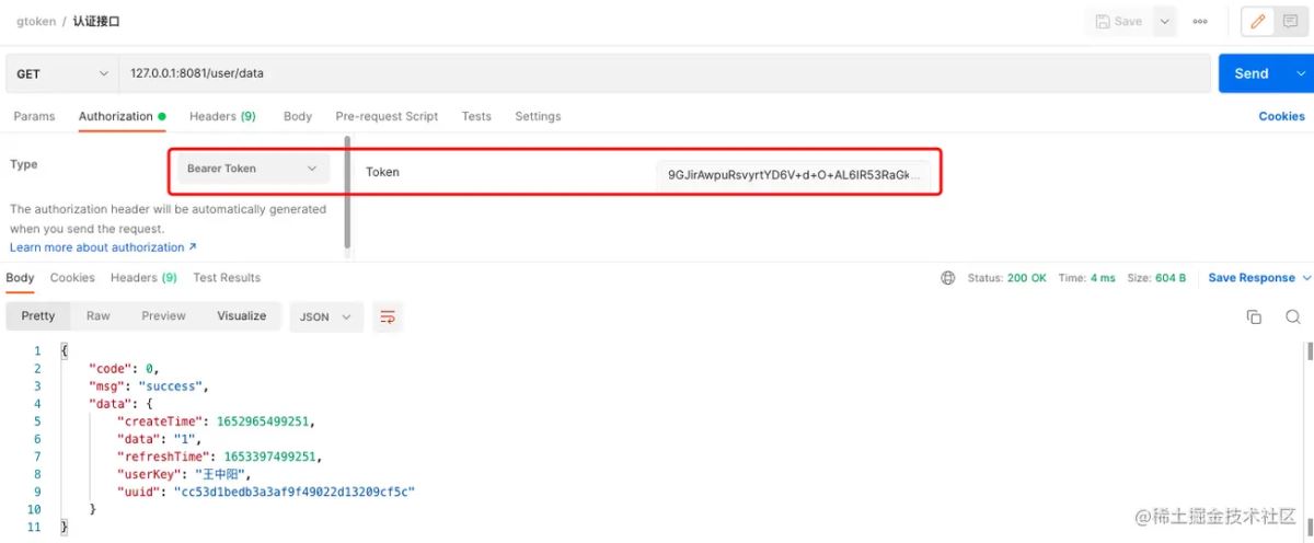 携带token再次访问认证接口:返回成功