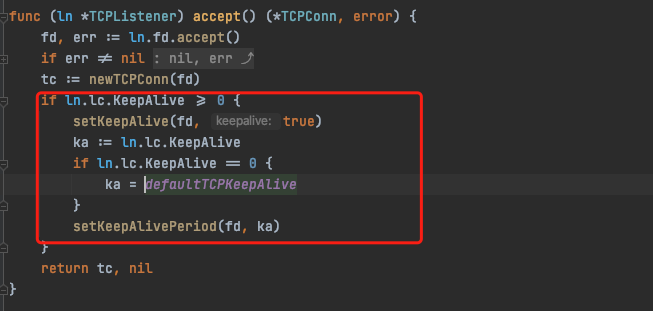 tcplistenser的lc配置文件的keepalive字段>>0就开启tcp keepalive