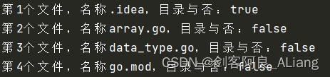 fmt.Printf("第%d个文件,名称%s,目录与否:%vn", k, v.Name(), v.IsDir())