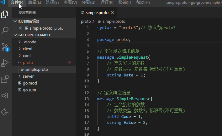 1.新建proto文件夹,在里面新建simple.proto文件