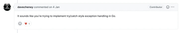 社区在交流时,也发现了用户在现有机制下可以自主实现 Go 的类 try-catch 的模式。