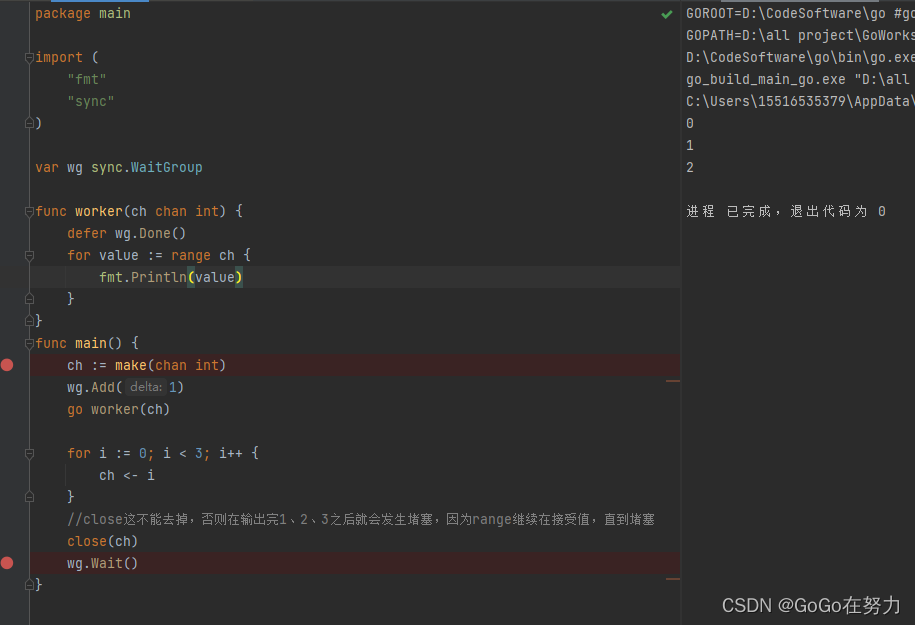 for-range从channel上接收值,直到channel关闭,该结构在Go并发编程中很常用,这对于从单一通道上获取数据去执行某些任务是十分方便的