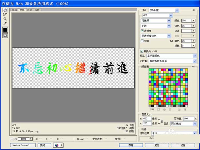 7、执行文件-存储为web和设备所用格式命令,将文件保存为gif格式即可。