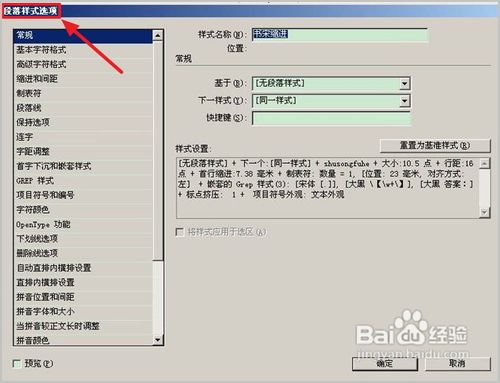 7、InDesign段落样式点开之后的样式。