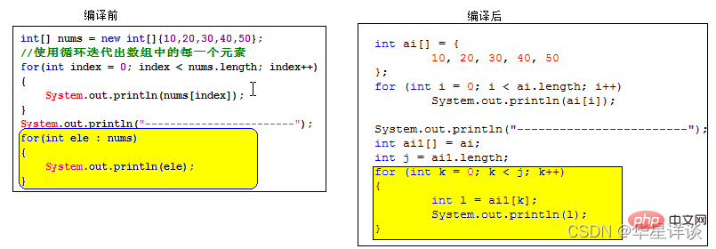 }登录后复制其实我们在使用循环迭代数组的时候,往往是不关心迭代变量(数组的索引)。那在Java中有没有更好的方式,在迭代数组元素的时候就只操作数组元素,不去操作数组的索引呢?其实是有的。