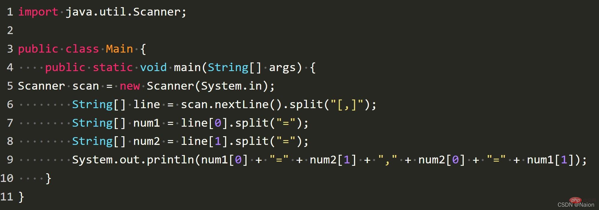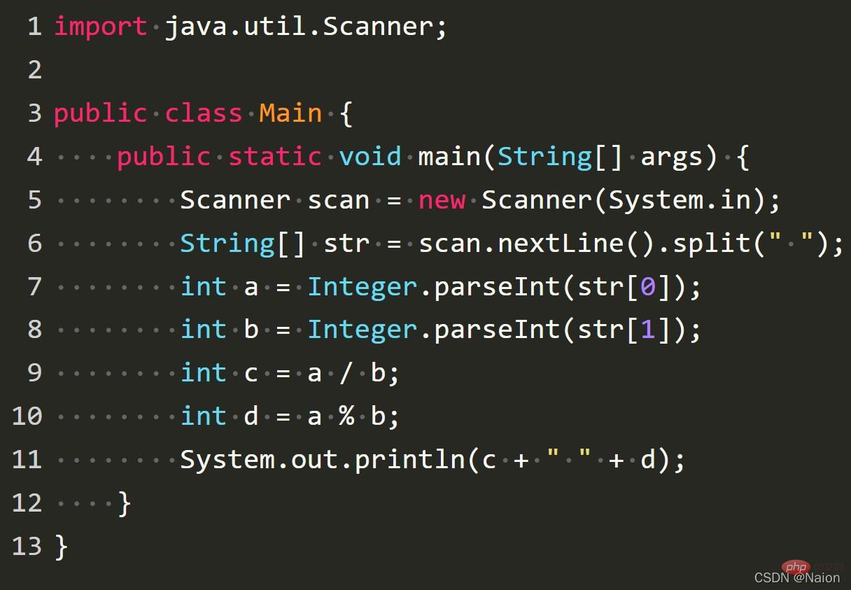 类似于 23 34这样的格式。两个数之间带了空格,这个时候,单用int输入是解决不了问题的,当然,你可以连续使用两个scan.nextInt()来进行输入。但是,我们还可以这个时候,需要换一种角度。我们将23 34整体看成一个字符串,然后在空格处分割,分成23和34两个字符串,在将这两个字符串转换成整型就可以了。关于split()的方法请查看官方的帮助手册。
