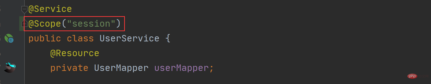 }登录后复制此时我们访问 B 对象中的 getUser 方法,就会发现此时的用户名为 A 类中修改的“MySQL”,而非原来的“Java”,这就说明 Bean 对象 user 默认就是单例的作用域。如果有任何地方修改了这个单例对象,那么其他类再调用就会得到一个修改后的值。