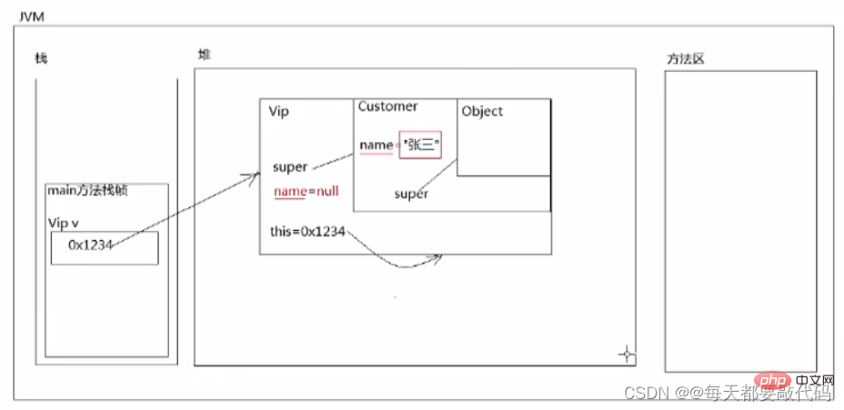 super(name); //给父类初始化了,子类并没有进行初始化是null