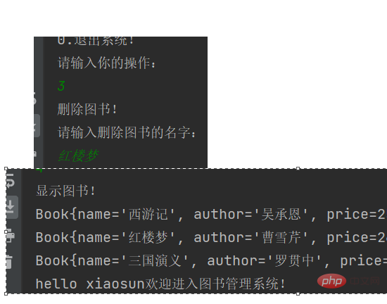 System.out.println("没有找到要删除的图书!");登录后复制运行程序,试试看