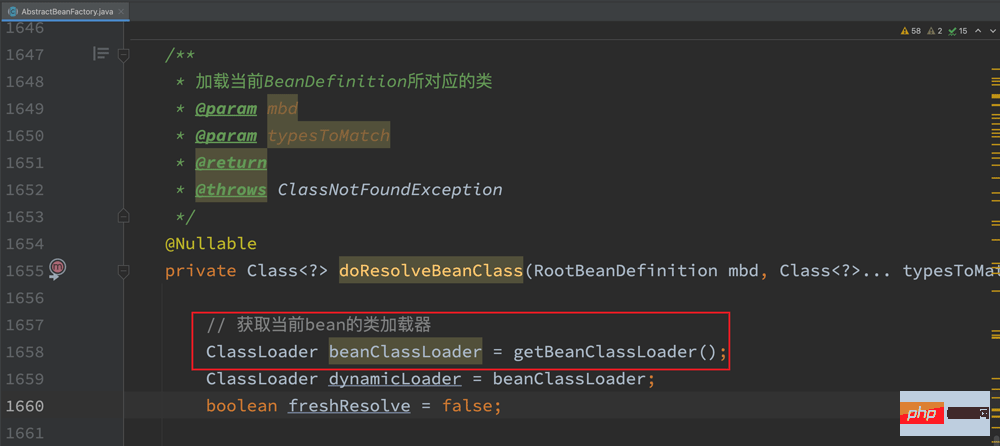 private ClassLoader beanClassLoader = ClassUtils.getDefaultClassLoader();登录后复制先利用BeanFactory所设置的类加载器来加载类,如果没有设置,则默认使用ClassUtils.getDefaultClassLoader()所返回的类加载器来进行加载。