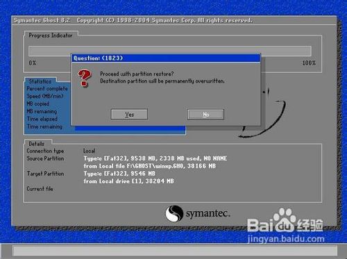 默认选择项在1,直接按回车即可,此时将请确认是否要恢复你的系统,选择YES即可,(默认选择在NO,请用方向键移动到YES,按回车即可)如下图9