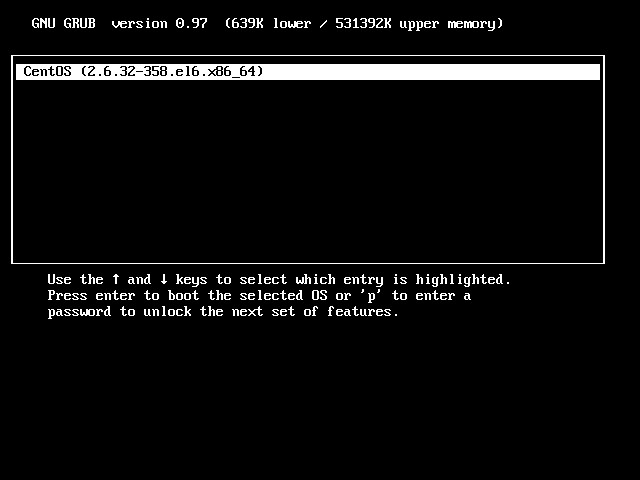 还记得上一篇随笔里面/boot/grub/grub.conf这个文件里的第一个 title 字段吗? 没错,每一个title都是一个操作系统的配置选项,这里我们只有一个,也就是上面图片显示的那个,如果有多个title字段,这里就会列出来供我们选择不同的操作系统。