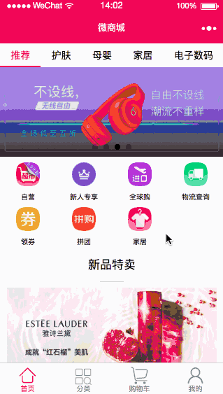 微信小程序商城开发之商城首页福利场不限下拉刷新动态API数据的代码实现