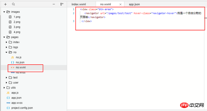 新建一个文件夹,命名为no,完善里面的wxml测试信息,为了方便测试随意填充内容