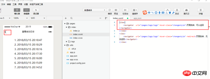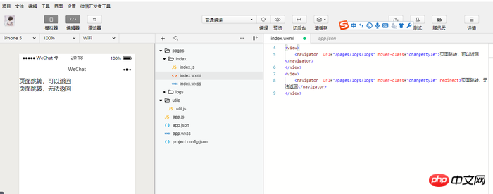 <navigator url="/pages/logs/logs" hover-class="changestyle">页面跳转,可以返回</navigator>