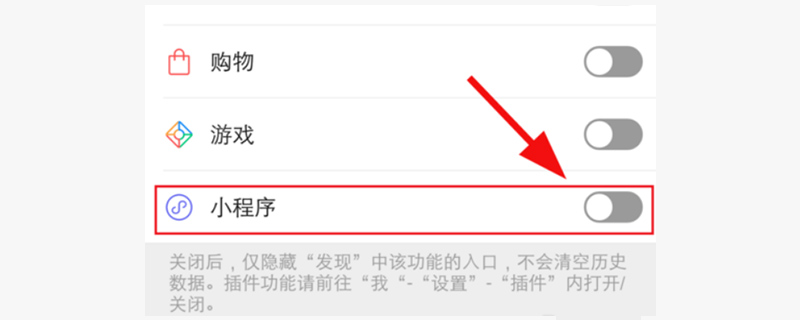 4、打开后,可以看到这里就有小程序的开关设置了,点击开关关闭掉就行了。