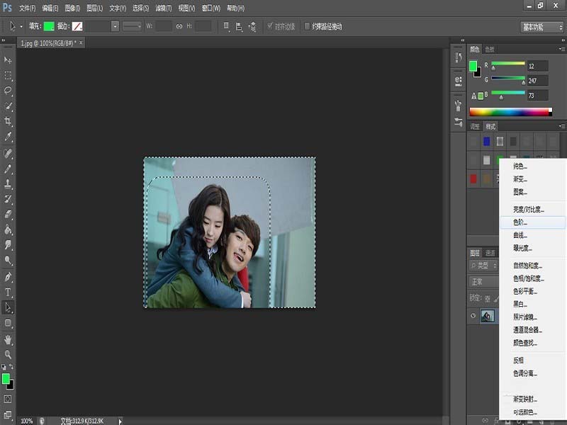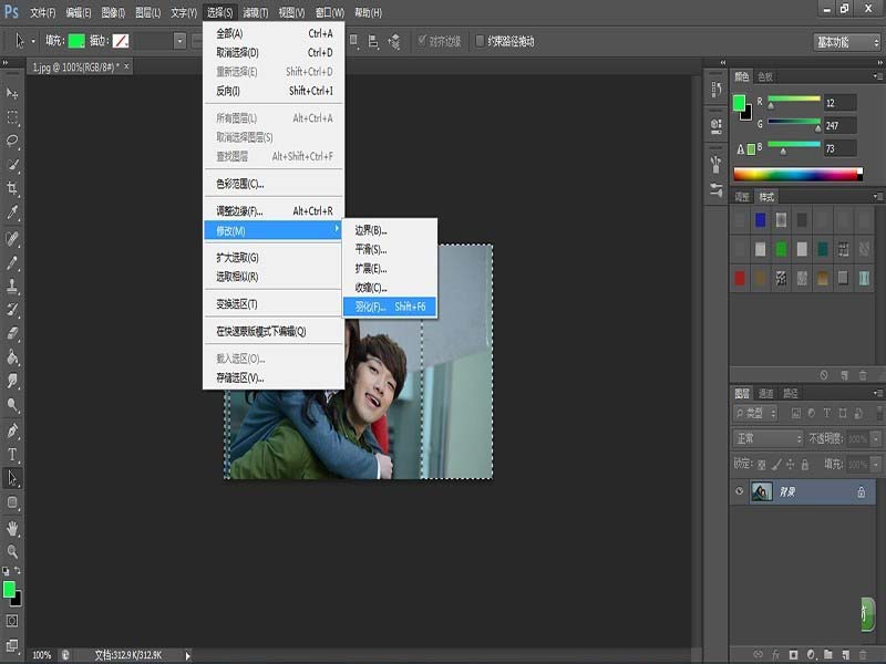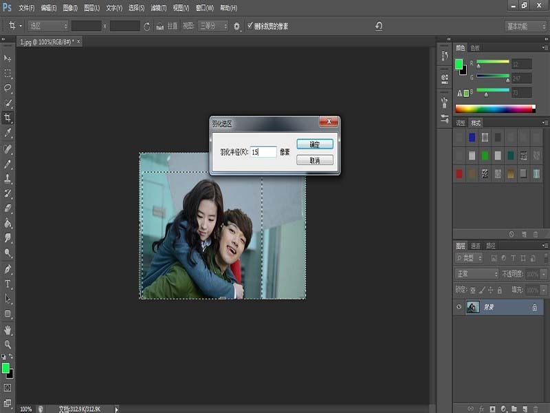 1、打开一张照片,给图片做一个选区来圈定它,我们选择矩形工具。