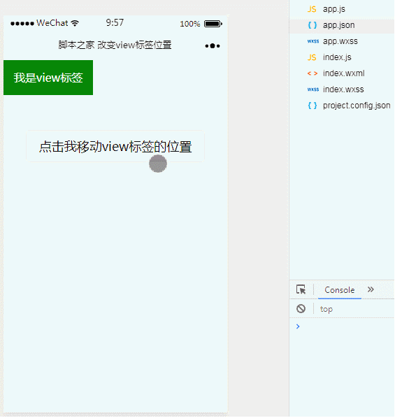 以上就是感动小白菜最近收集整理的关于微信小程序实现点击按钮移动view标签的位置功能的全部内容,更多相关微信小程序实现点击按钮移动view标签内容请搜索靠谱客的其他文章。