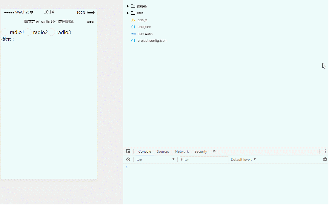 以上就是感动小熊猫最近收集整理的关于微信小程序使用radio显示单选项功能【附源码】的全部内容,更多相关微信小程序使用radio显示单选项功能【附源码】内容请搜索靠谱客的其他文章。