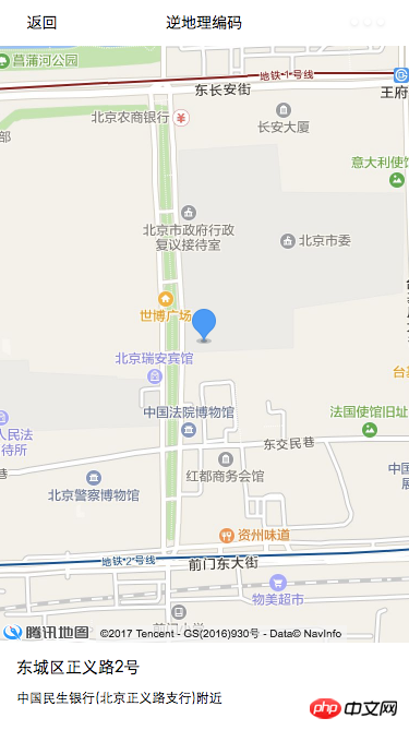 ……登录后复制登录后复制示例将当前位置以 marker 的形式显示在地图上,并通过逆地理编码请求,获取该位置的详细的地址信息,以文本形式显示。运行程序,效果如下: