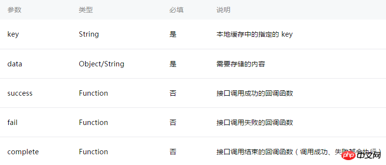 将数据存储在本地缓存中指定的 key 中,会覆盖掉原来该 key 对应的内容,这是一个异步接口。