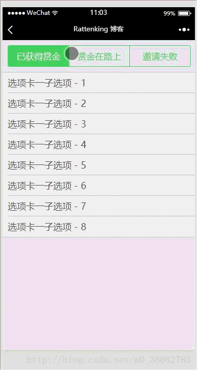 以上就是强健鸡最近收集整理的关于微信小程序实现导航栏选项卡的效果的全部内容,更多相关微信小程序实现导航栏选项卡内容请搜索靠谱客的其他文章。